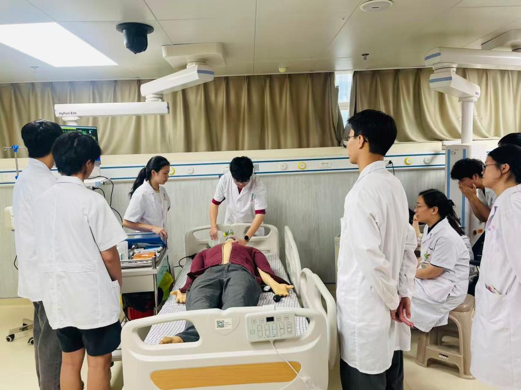 据临床技能培训中心负责人廖朝晖介绍,模拟教学的优点是零风险实战演练与高效精准复盘。此次使用的高级综合模拟人可覆盖多系统病例模拟,能有效培养学员的临床思维、应变能力与团队协作素养。