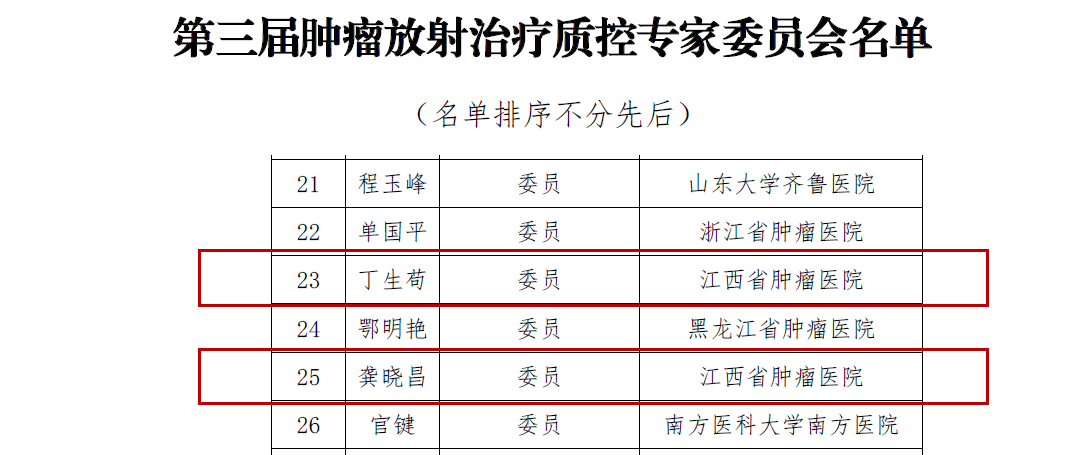 放射治疗质控专家委员会是国家癌症中心领导下的核心专业平台,承担着制定全国质控规范、推动放疗质量改进、发布技术指南的重要任务。江西省肿瘤医院两位专家成功入选,体现了国家癌症中心对该院规范化放疗工作和技术体系建设成果的认可,也标志着江西省肿瘤放射治疗专业再次获得国家级平台的高度肯定。