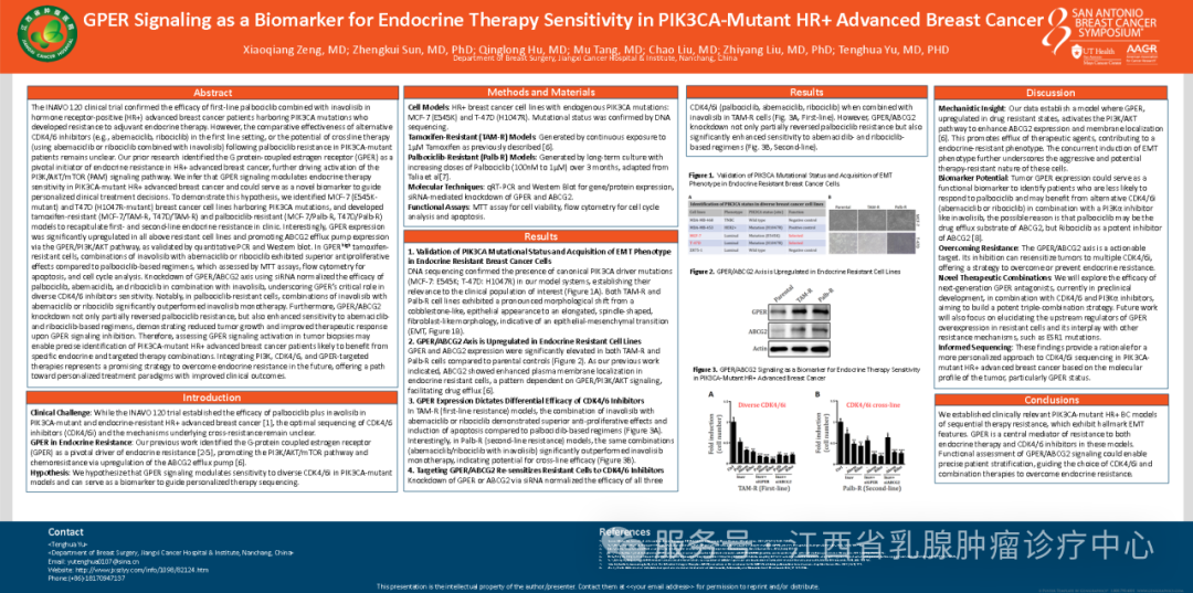 江西省乳腺肿瘤诊疗中心作为集外科、内科、放疗、病理、影像、护理于一体的综合性学科群,不仅年手术量逾2000台,在乳腺癌保乳术联合术中放疗、乳腺腔镜/机器人手术、淋巴水肿治疗、碘125粒子肿瘤精准定位、DIEP皮瓣重建等方面均处于省内领先、国内先进水平,更始终坚持“临床与科研并举”的发展理念。此研究成果亮相国际顶级学术舞台,充分彰显了江西省乳腺肿瘤诊疗中心团队扎实的科研功底、敏锐的临床问题洞察力以及强大的创新能力。团队将继续深化乳腺癌耐药关键靶点的转化研究,致力于将前沿科学发现转化为改善患者预后的实际临床方案,为推动乳腺癌精准诊疗发展贡献力量。
