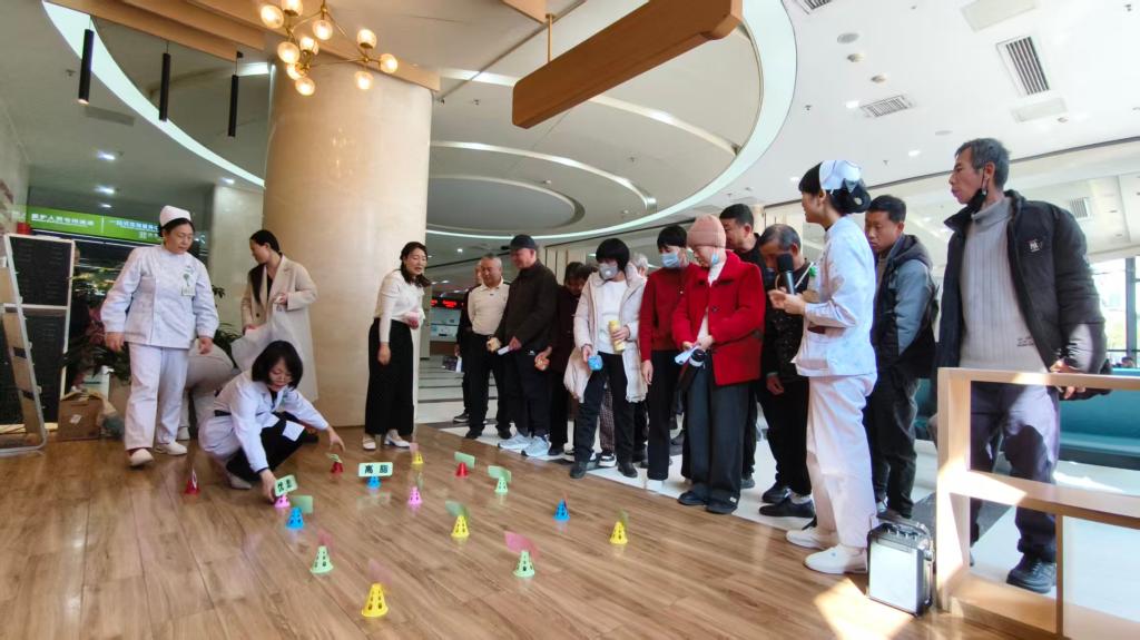 互动游戏“肾”采飞扬环节更是趣味满满。医护人员精心设计了击倒不良习惯的沙包游戏,将高盐饮食、熬夜、滥用药物等伤肾行为制作成目标牌。患者及家属手持沙包,精准击倒这些“健康敌人”,在轻松的游戏里加深了对伤肾行为的印象,学会了如何在日常生活中规避风险。