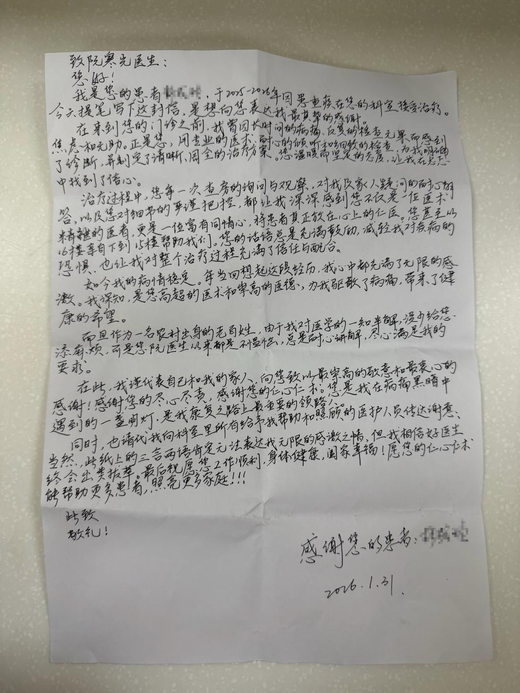 纸短情长!这封感谢信里藏着医生和患者的“双向奔赴”