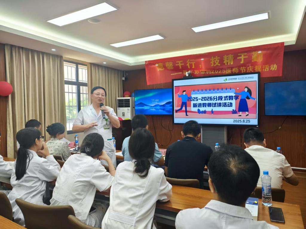 (曹金玲报道)又是一年开学季,8月25日上午,江西省肿瘤医院(南昌医学院第二附属医院)医学影像科举办了一场新进老师试讲活动,5位新进老师参加试讲,江西省肿瘤医院徐仁根和南昌医学院影像学院院长王向东担任点评嘉宾。