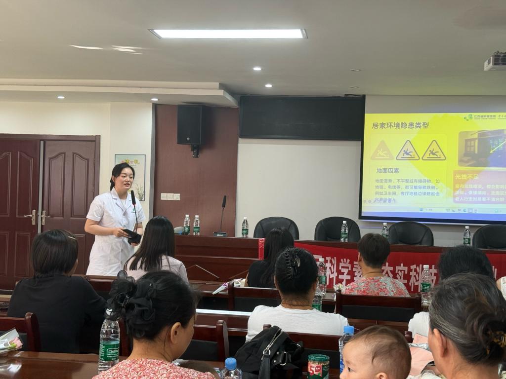 接下来,张玉婷护士讲授了防跌科普指南。为了将安全理念内化于心、外化于行,她以一段发人深省的跌倒视频切入,瞬间抓住了所有居民的心,让大家深刻认识到跌倒绝非小事。她细致入微地讲解了居家环境中潜藏的各类风险,从浴室到厨房,隐患无处不在。她不仅讲解了跌倒后如何科学自救与呼救的正确步骤,还耐心指导每一位居民进行现场操作演练,将知识转化为实际技能。这种“边讲边练”的方式,让防跌知识真正入脑入心。