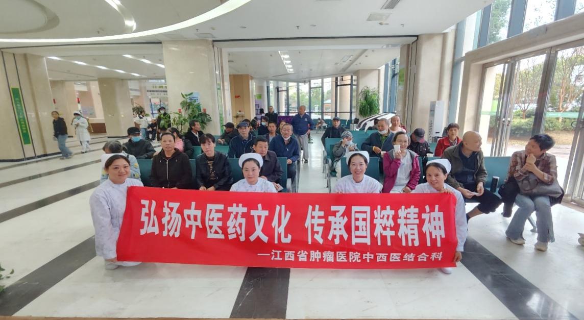 (徐志清报道)为弘扬传统医学智慧,推动中西医结合肿瘤防治事业发展,在10月22日世界传统医药日当天,江西省肿瘤医院中西医结合科精心组织了主题科普宣传活动。本次活动以“肿瘤饮食与中医技术全攻略”为核心,通过案例分享、实操演示、互动答疑等多种形式,为广大肿瘤患者及家属提供了实用的康复指导,使传统医药的魅力融入患者的康复之路。