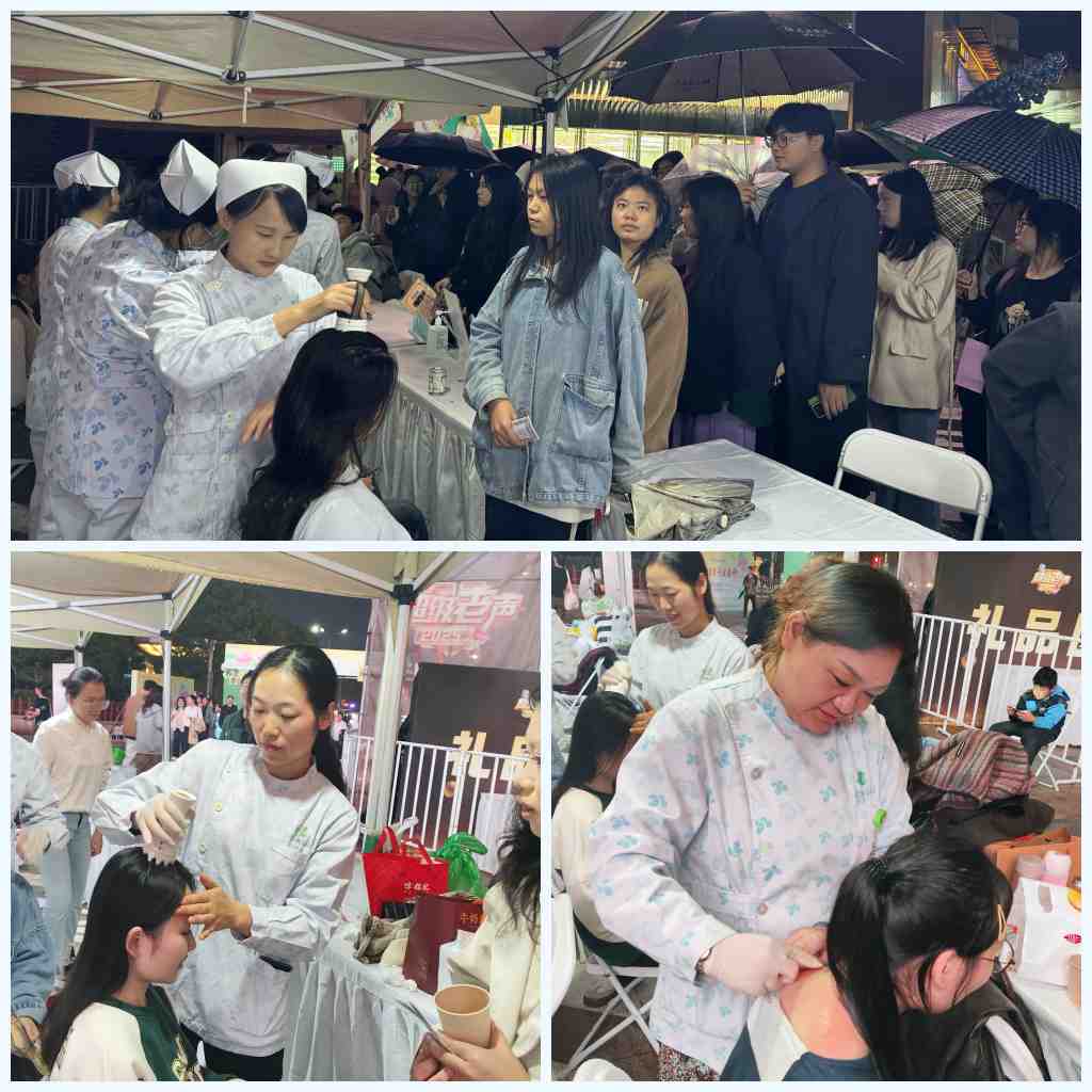 让人意外的是,第二天活动刚开始,这位大学生就再次来到护理区,笑着说:“昨天刮完肩颈舒服多了,今天想试试头疗,熬夜后脑子沉,想再放松一下。”护士随即为他开展头部经络梳理,帮助舒缓神经、改善脑部循环。体验结束后,大学生连连称赞:“头不昏了,整个人清爽不少,中医外治法真实用!”