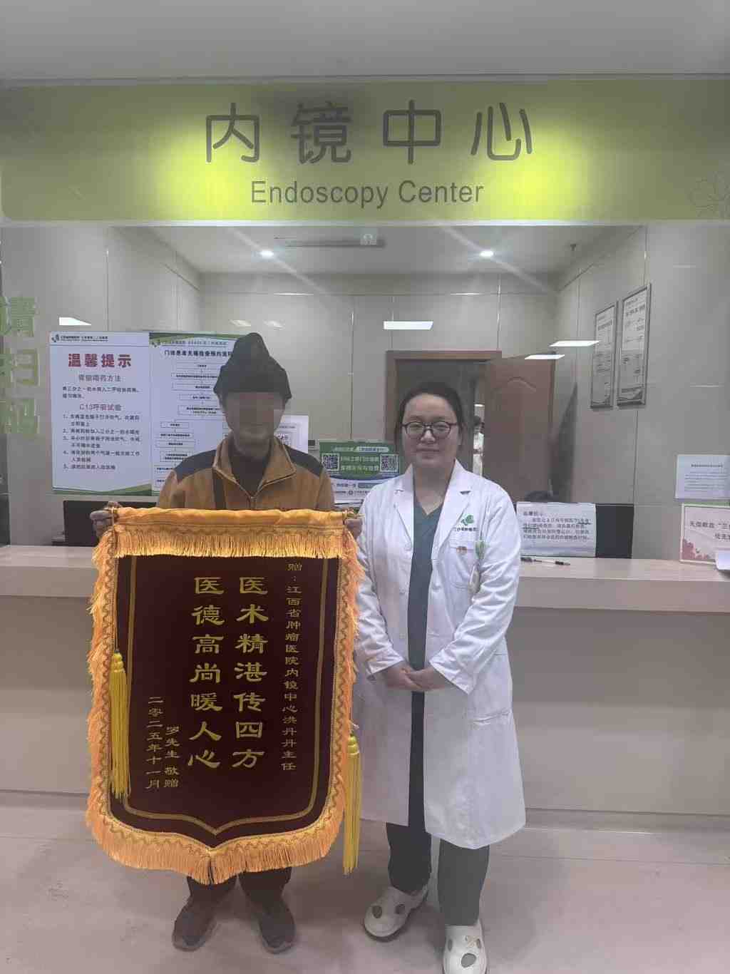 这面锦旗不仅承载着患者一家的信任与感谢,更是对江西省肿瘤医院内镜中心“以患为先、技术为本”服务理念的高度认可。洪丹丹医生以仁心仁术,再证医患之间的深情厚谊。