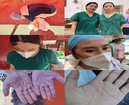 在骄阳似火下,他们在防护服下时刻汗如雨下,他们有的因坚持不住而中暑倒地;有的摘下手套,双手被汗浸的发白褶皱,疼痛难忍……但这一切都不影响他们第二天的斗志昂扬,服下防暑药,穿起防护服继续干!因为在他们心中“疫情就是命令,守护人民健康就是自己坚持不倒下的责任和使命。”