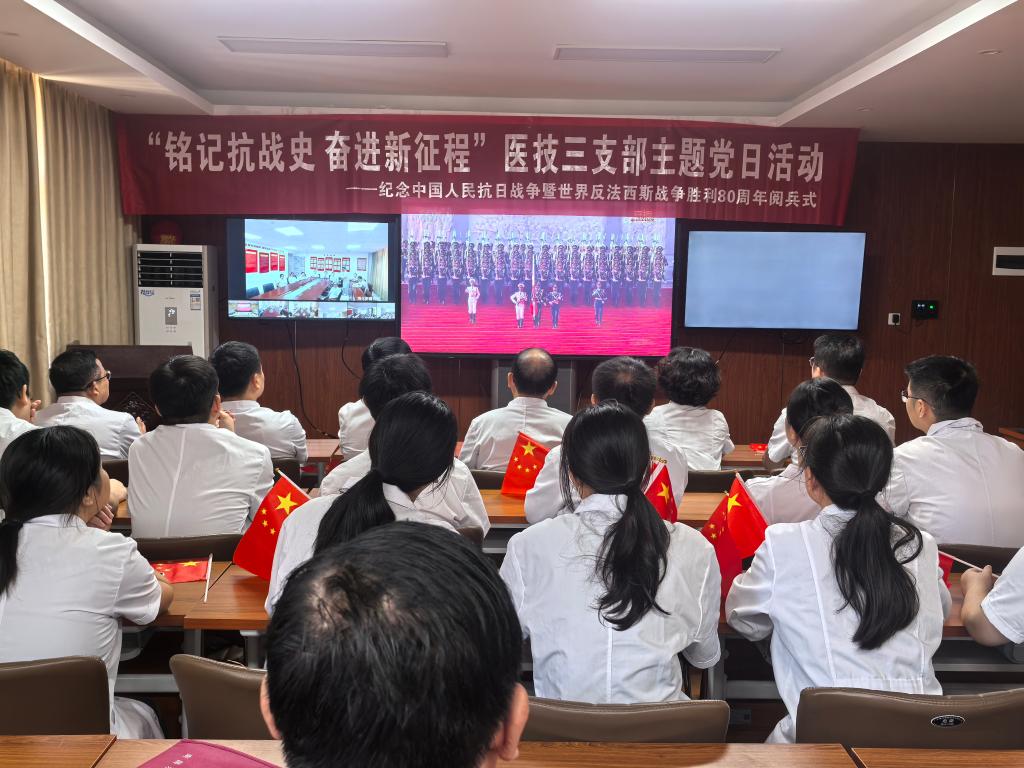 (罗伟 报道)9 月 3 日,医学影像科、医技三支部组织了一场具有深刻意义的党日活动,全体党员、职工共同观看了纪念中国人民抗日战争暨世界反法西斯战争胜利 80 周年阅兵式。