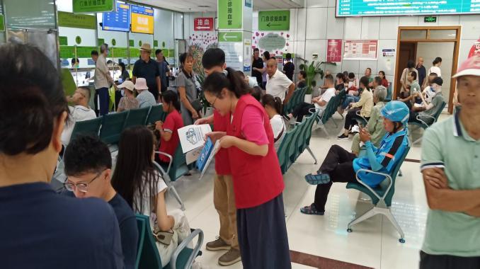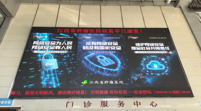 活动现象,机关五支部全体党员及信息科职工通过利用门诊及住院电子大屏幕,播放宣传周的官方海报、视频、口号标语等,同时对门诊患者以及科室宣传网络安全知识和发放网络安全知识手册,积极营造医院网络安全文化氛围,提升大家的网络安全意识。