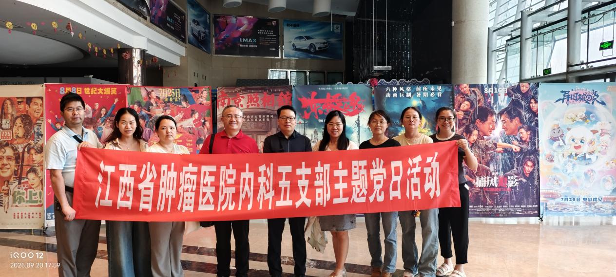 (邱志敏报道)9月20日下午,江西省肿瘤医院内科五支部以“铭记历史,砥砺初心,护卫健康”为主题,组织支部全体共产党员前往南昌市天幕影城,集中观看爱国主义教育影片《731》,在光影中重温历史记忆,在感悟中凝聚奋进力量。