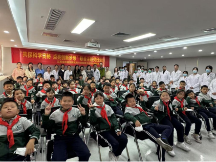 2025年10月29日上午,“共探科学奥秘,点亮创新梦想”联合主题党日活动在门诊10楼中心实验室开展。此次活动由江西省肿瘤医院机关第八党支部与南昌外国语高新学校共同举办,48名小朋友参与。