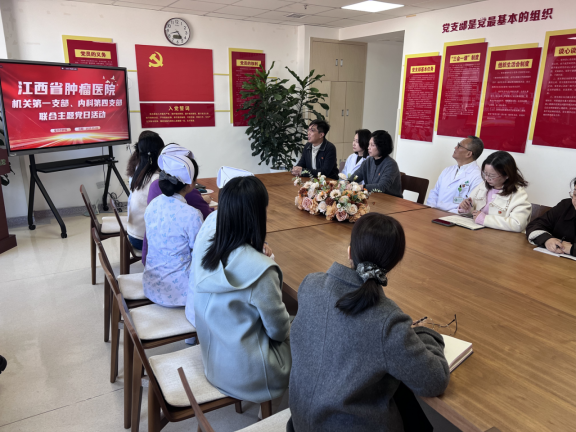 为深入推进党建与业务工作深度融合,切实将职能科室为临床医技服务的理念落到实处,2025年11月21日,江西省肿瘤医院机关第一党支部与内科第四党支部联合开展了“党建引领 ‘职’能为您”主题党日活动。党委书记许斌以普通党员身份参加。