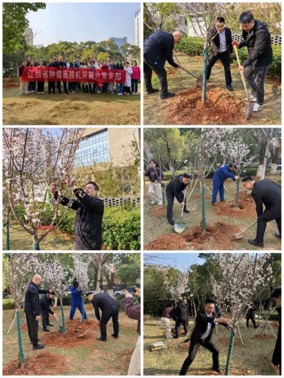 春回大地万物苏,植树添绿正当时。3月12日上午,在第48个植树节来临之际,江西省肿瘤医院机关六支部组织全体党员,在院区开展“党建引领添新绿,保障有力争先锋”主题党日活动,以实际行动增绿护绿、美化环境,为广大患者和职工营造更加绿色、温馨、舒适的就医与工作环境。