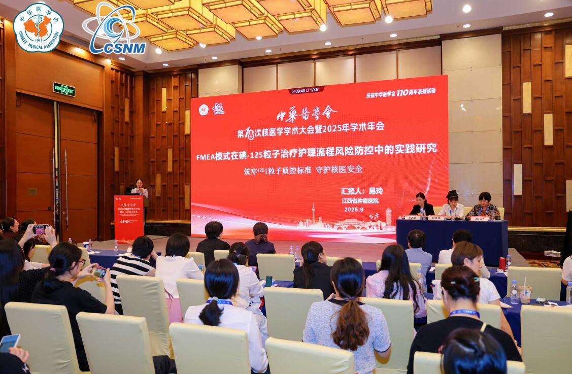 (易玲报道)9月18日至21日,中华医学会第18次核医学学术大会暨2025年学术年会在成都举行。在核医学护理组会场上,江西省肿瘤医院核医学护理团队共提交了8篇论文,全部被录用,展示了强大的科研实力。其中,《FMEA模式在碘-125粒子治疗护理流程风险防控中的实践研究》成功入选口头交流;《八段锦联合情志护理对分化型甲状腺癌术后服用碘-131治疗患者焦虑和生活质量的影响研究》成功入选电子壁报。