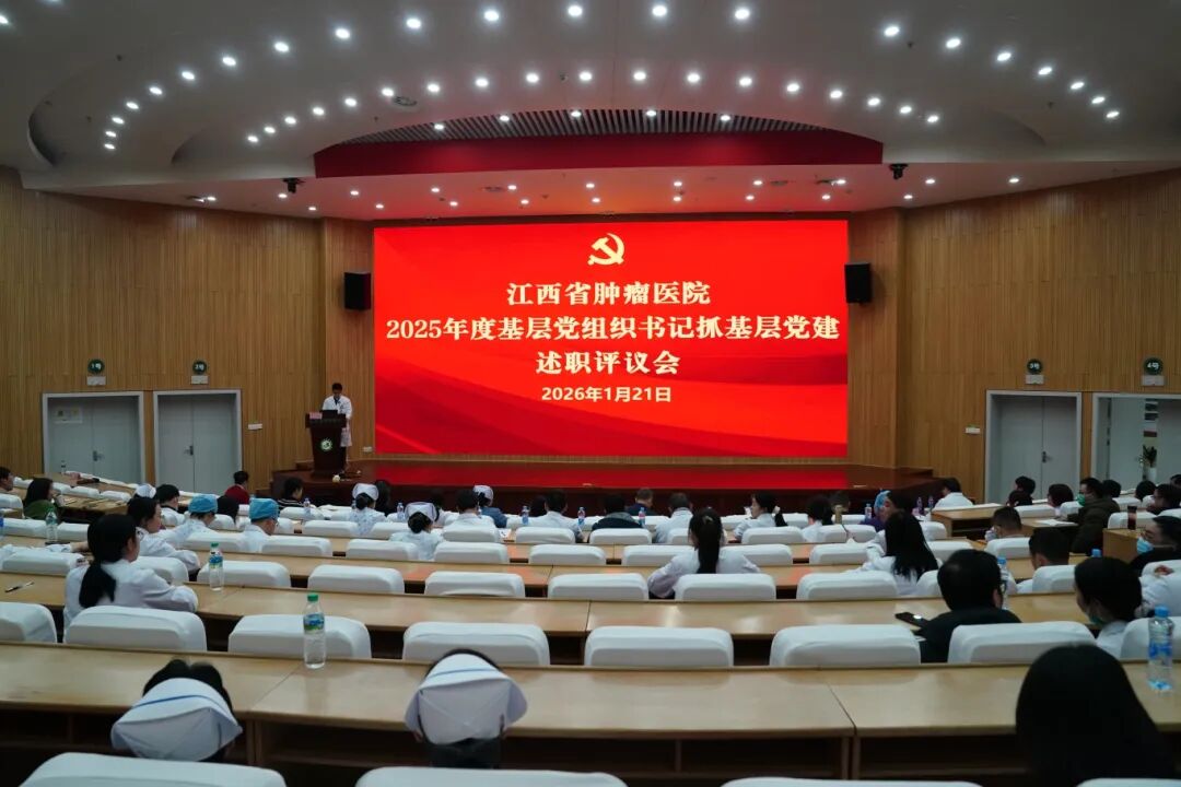 2026年1月21日,江西省肿瘤医院召开2025年度抓基层党建工作述职评议会,进一步压紧压实基层党组织书记抓党建主体责任,全面提升医院党建工作质效。院党委书记许斌作点评讲话,党委副书记李金高主持会议,在家院领导参加会议。