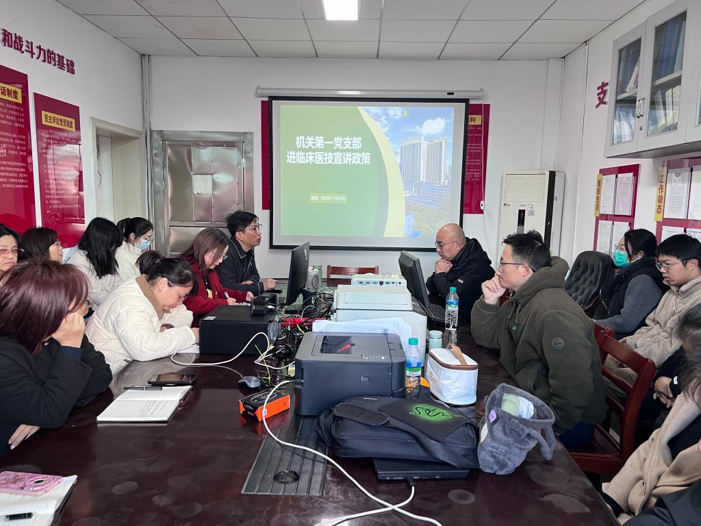 打破以往“我讲你听”的传统模式,机关第一党支部此次变“被动传达”为“主动服务”,变“普遍灌输”为“精准滴灌”。活动前期,支部充分发挥所辖党委办公室、组织人事科、健康宣教科、工会等科室的职能优势,对涉及职工切身利益、科室日常运行相关的党务、人事管理、职称评审、健康促进、工会福利等方面的14项重要制度与政策进行了系统梳理与提炼,形成了清晰的“政策服务菜单”。